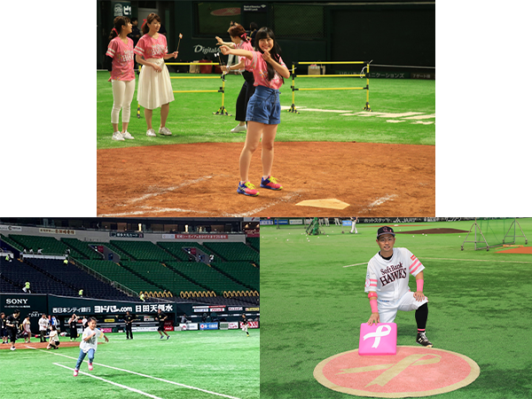 ドームツアー「試合後フィールド体験コース」では試合後の熱気冷めやまぬフィールド内へ入ることができます♪タカガール♡デー限定の塁ベースやネクストバッターズサークルを触れて、撮って、遊んで、もっと!もっと!もっと!思い出を残そう!