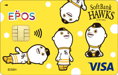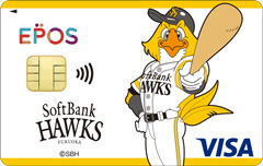 福岡ソフトバンクホークスエポスカードは、【クラブホークスの年会費が初回30%OFF】または【HAWKS公式オンラインストアで使える2,000円クーポン】の選べる新規入会特典付き。