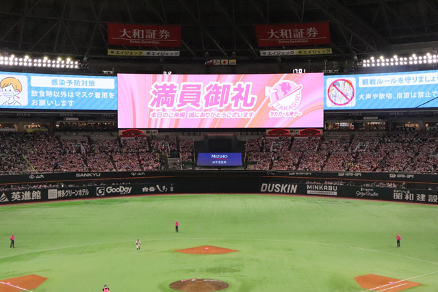 なお、ホークス主催公式戦における満員御礼は 2019 年 9 月 21 日(土)北海道日本ハムファイターズ戦以来となります。
