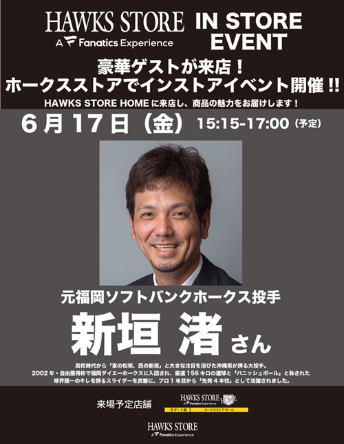 ホークスOBの新垣渚さんがHAWKS STORE HOMEに来店し、商品の魅力をお届けします!