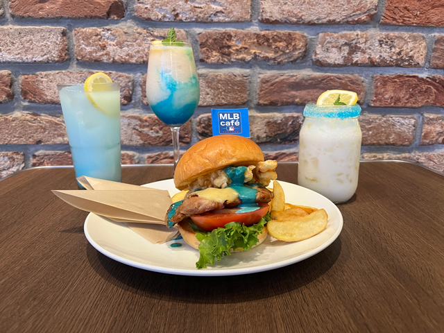 鷹の祭典期間限定のバーガー&ドリンクがBOSS E・ZO FUKUOKA 3階「MLB café FUKUOKA」に登場☆鷹の祭典2022バーガーはとうもろこしのフリットとブルーハニーマスタードの相性抜群です♪