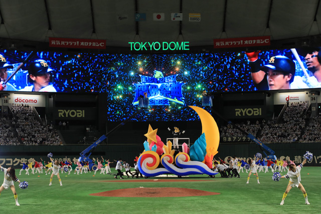 試合前の東京ドームの外周デッキでは「FAN!FUN!STAGE」もPayPayドームから出張。ホークスパフォーマンスチームや「ハリー」をはじめとしたマスコットキャラクター公式ダンスチームが盛り上げに一役買いました。