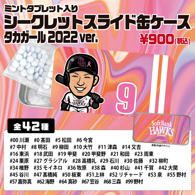 また、明石健志選手の通算1000試合出場を記念した本人直筆サイン入りフォトパネルや、人気の「シークレットスライド缶ケース」がタカガールデザインになって新登場!