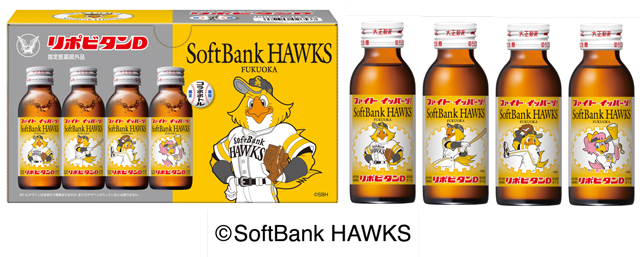 ソフトバンクホークスファンの皆さんはもちろん、日頃よりリポビタンDをご愛飲いただいている皆さんにもご好評頂いている限定ボトルを発売します。今年は4種類の新しいデザインをご用意しました。