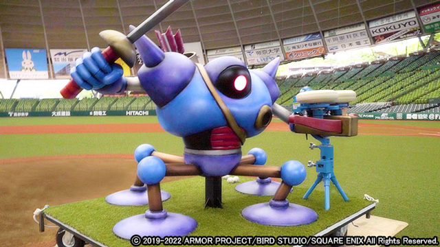 コラボ試合の3日間は、ご来場のお客様に「スライムボード』を先着順でプレゼントするほか、ドラゴンクエストウォークに登場するモンスターたちのフォトスポットが設置されます。また、試合前は「キラーピッチングマシン』が登場し、試合中も「ドラゴンクエスト」シリーズ楽曲によるコラボ演出やコラボビジョン映像で球場を盛り上げます。
