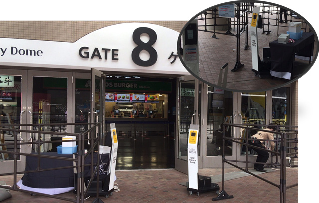 球場内へ入場する際、お手持ちのチケットをゲート入口の認証端末にかざすとコラボ試合ならではの、あの音が流れます!