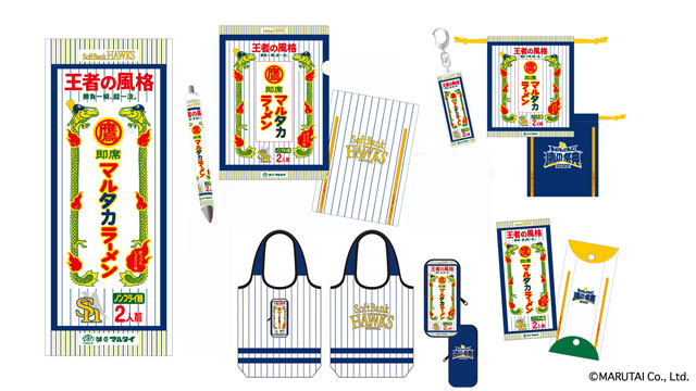 福岡PayPayドームのファウルポールへの命名で話題の「マルタイ棒ラーメン」コラボグッズ