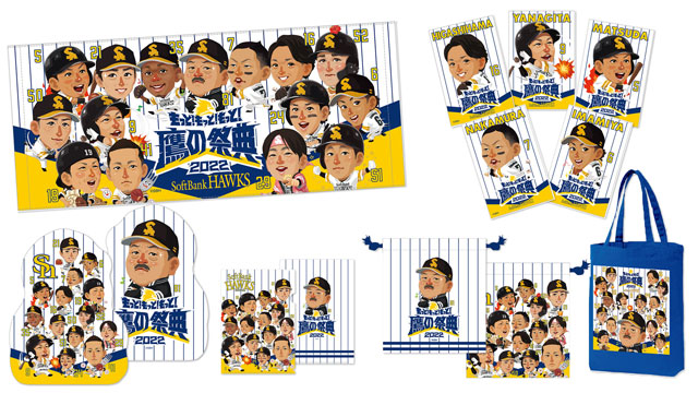 「鷹の祭典2022」グッズが続々ラインナップ中!今回は人気のキャラクターとのコラボグッズや夏らしいフルーツ柄がかわいいアイテムをご紹介します。また、選手のバースデーグッズは9月・10月・11月生まれの選手が受注受付を開始しました。ペアチケットプレゼントや、オンラインストアでは明日から2日間限定で送料無料キャンペーンを実施しますのでこの機会にお買い物をお楽しみください♪