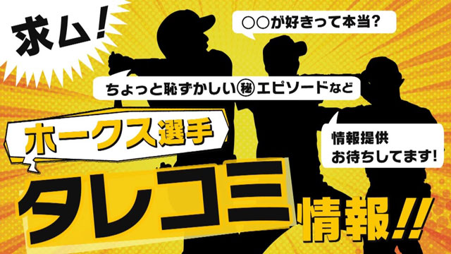 ささいな情報でも大歓迎!Twitterで「#ホークスTVこれタレコみます」で選手にまつわる情報や、確かめてみたいことをつぶやいてください。