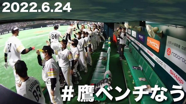 「#鷹ベンチなう」はPayPayドームで開催する試合日限定、試合中のベンチ内を観察できます。「若鷹モニタリング24時」はタマスタ筑後のサブグラウンド・室内練習場の様子を固定カメラで365日配信する球界初の試みです。