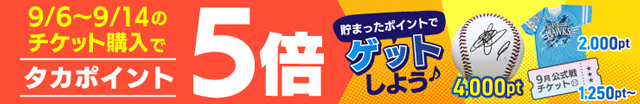 | 9月6日(火) | 18:00 | 楽天イーグルス | 【全日程】 【9/14(水)限定】 | |