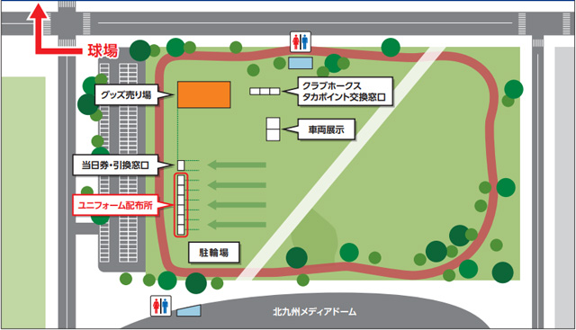 | 場所 | 三萩野公園内ユニフォーム配布所横 「ビジターグッズ配布所」 |
