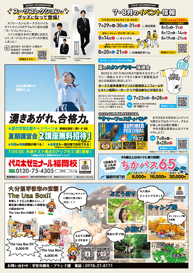 ※掲載内容は、6月30日時点の情報です。内容は変更になる可能性がありますので、最新の情報はホークス公式サイトでご確認ください。