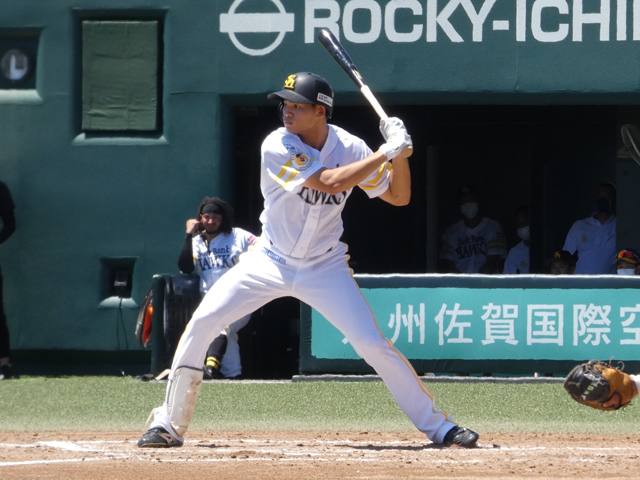 かつて沢村賞にも輝いたファイターズ・金子投手から放った今季3号ソロは大きな自信となったに違いありません。笹川選手は高卒2年目。「ギータ2世」の呼び声高く、背番号も柳田悠岐選手が入団当初につけていた「44番」を背負っています。昨季の二軍戦出場は4試合のみでしたが、今季はここまで61試合に出場しています。打率は.180と苦戦していますが、未来の長距離砲として経験を積み重ねる毎日。大切な時間を過ごしている最中です。