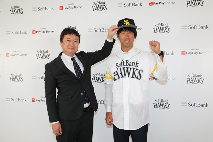 「すごく嬉しいです。去年ノーテンダーで自由契約になり独立リーグへ行きました。すごく悔しい思いをしましたし、まだNPBでやりたい気持ちはあったので、ホークスに入団できて嬉しいです」