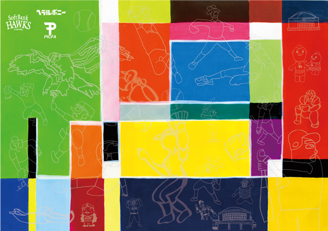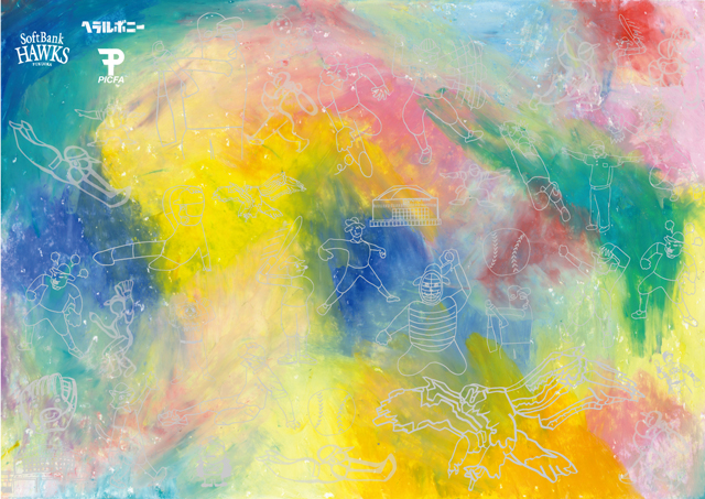 この度、ヘラルボニーの契約作家であり、PICFAに在籍する複数の九州出身アーティストによる、「ホークス×野球×九州」をテーマにデザインしたアートが完成しました。