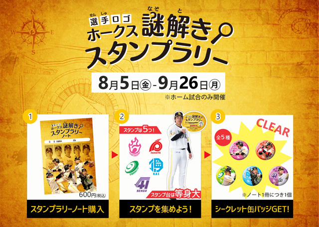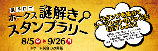人気商品、「選手ロゴ」を使用した「謎解きスタンプラリー」が8月5日(金)から開催決定!選手ロゴのスタンプをコンプリートするとシークレット缶バッジをプレゼント♪観戦の記念に、夏休みの思い出に、選手にまつわる謎解きに挑戦してみよう!