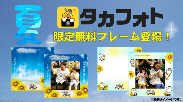 観戦の様子を自動で撮影できるアプリ「タカフォト」では、夏の無料フォトフレームが2種新登場!