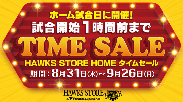 HAWKS STORE HOMEでのタイムセールが、好評につき延長決定!8月31日(水)~9月26日(月)の期間中のお得な商品をチェックしてHAWKS STOREへお越しください♪