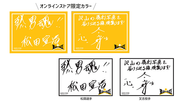 グッズご購入のお客様へ、選手直筆のThank youカード(レプリカ)を1枚プレゼント!今月は松田選手or又吉投手からファンの皆様へメッセージをお届けます(選手は選べません)。