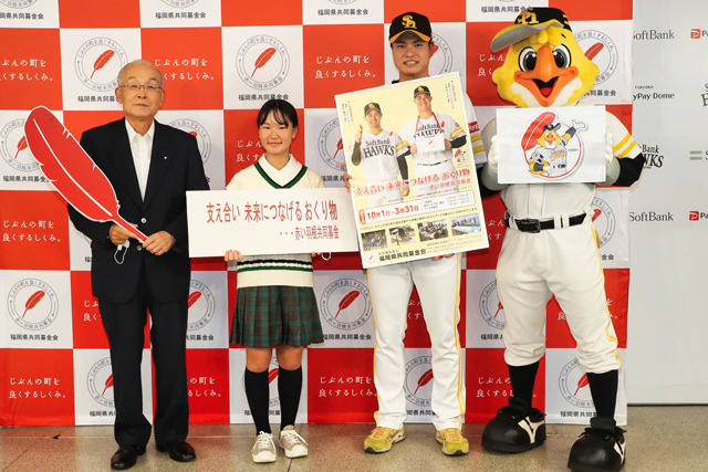 笠谷俊介投手とリチャード選手が福岡県共同募金会の「福岡県 赤い羽根応援大使」を務めることになりました。ホークスの選手が応援大使を務めるのは11年目となります。
