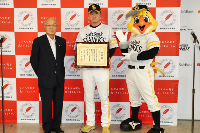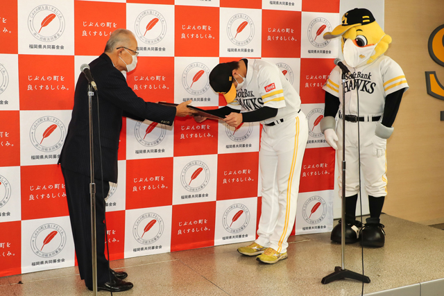 また、この会見に先立って福岡ソフトバンクホークス球団の「ファイト!九州」の一環として、九州8県の共同募金会へ寄付を行ったことへ感謝状を球団に贈呈いただきました。