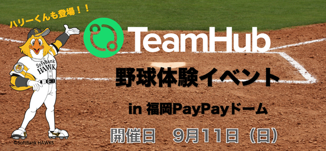 9月11日(日)にお子さまを対象として、スポーツチーム応援アプリ「TeamHub」を運営する株式会社Link Sportsによる「TeamHub野球体験イベント in 福岡PayPayドーム」を開催します。