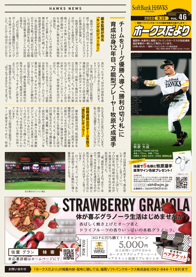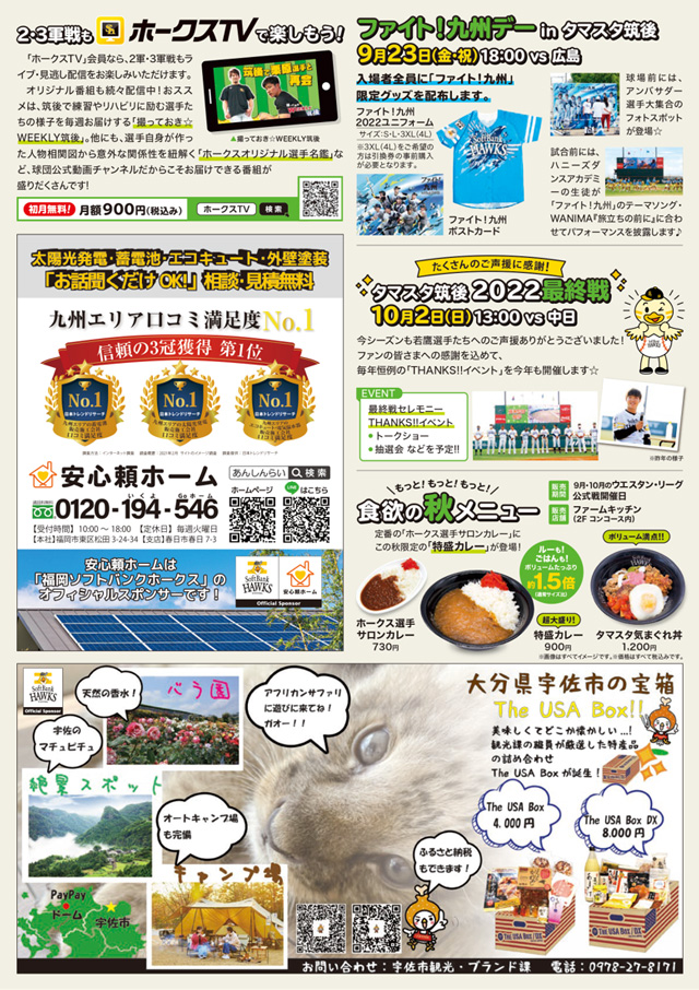 ※一部配布されない地域があります。また、『ホークスだより』の郵送対応は行っておりませんので、あらかじめご了承ください。