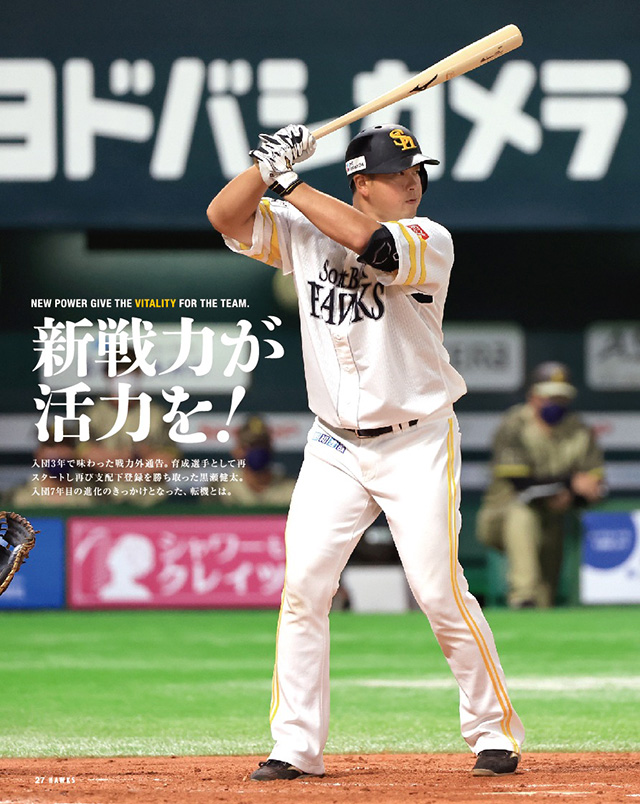 新戦力がチームに活力を与えて欲しいという願いを込めて、今季ブレークに期待する選手を紹介するコーナー「新戦力が活力を」。今回は7月28日に支配下に復帰した黒瀬健太選手にインタビューを行いました。入団3年で味わった戦力外通告。育成選手として再スタートし再び支配下登録を勝ち取った黒瀬選手。入団7年目でようやく開花した才能を紐解きます。