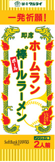 福岡ではおなじみの棒状めん「マルタイラーメン」の特別デザイン「一発祈願!ホームラン棒゜ール(ポール)ラーメン」を先着順で配布いたします!当日はPayPayドームに早めに来場して、ホームラン棒゜ール(ポール)ラーメンをゲットしよう!