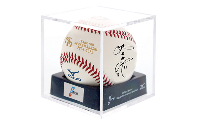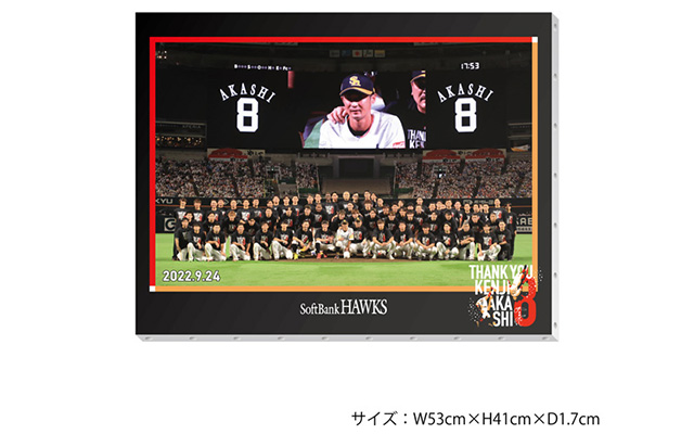 明石選手の雄姿を収めたオリジナルのデザインフォトに、本人の直筆サインが書き込まれます。
