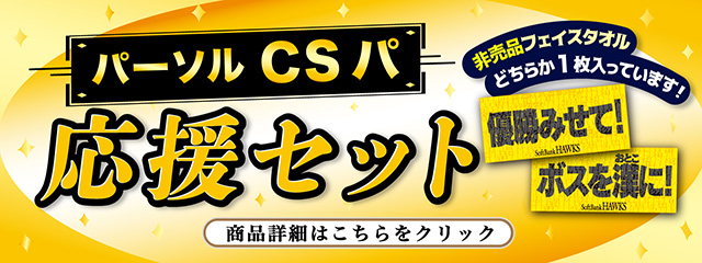 今季限りでホークスを退団する松田選手へ感謝の気持ちを込めた「THANK YOU VERY MATCH」グッズ第2弾の販売を開始しました。セレモニーでの胴上げ写真を使用したタペストリーやアクリルパネルなどもラインナップ!また、明日から始まる「パーソル CS パ」の熱戦に向け、お得なキャンペーンやノベルティプレゼントも実施します!事前にチェックしてお買い物をお楽しみください♪
