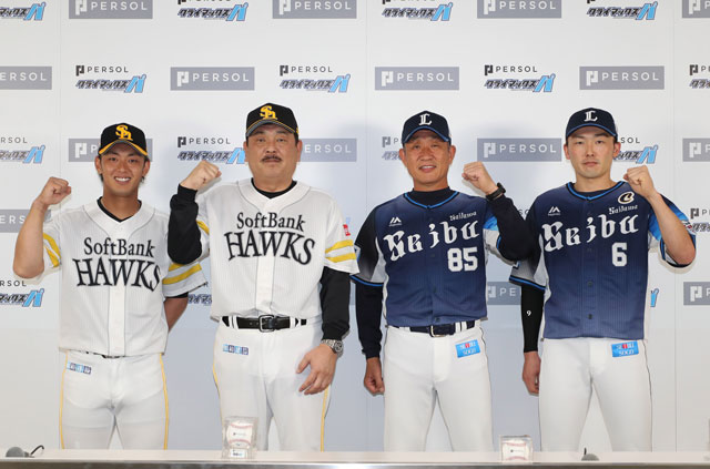 ホークスからは藤本博史監督、今宮健太選手会長。ファーストステージで対戦する埼玉西武ライオンズ辻発彦監督、源田壮亮キャプテン。さらにパーソルホールディングス株式会社の和田孝雄代表取締役社長CEOが出席しました。