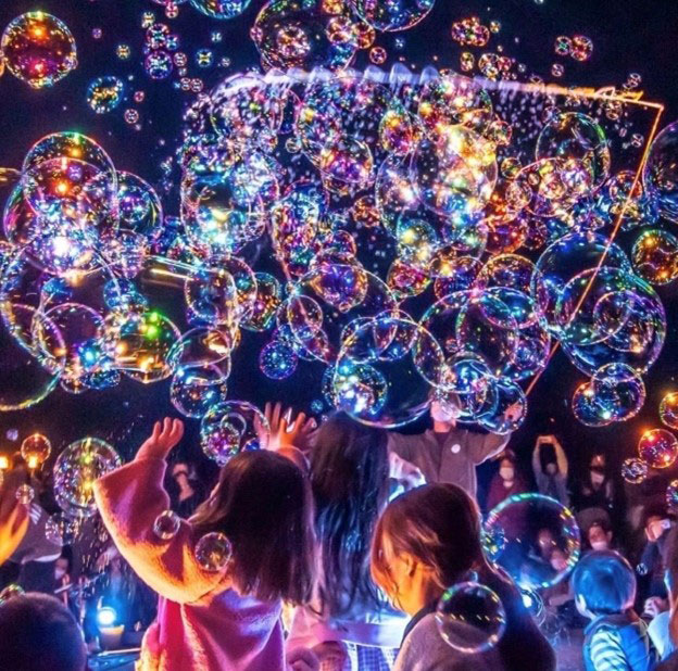 18:50よりレフト側でシャボン玉がライトアップ☆ 映えること間違いなし!