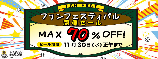 人気の若鷹ガチャからハロウィンver.が新登場!かぼちゃの帽子を被ったハロウィン仕様の選手たちのアイテムを手に入れよう!また、期間限定で販売したタカガール・鷹の祭典・ファイト!九州のイベントグッズセットが好評につき再登場!さらに、今なら最大70%OFFのファンフェスティバル開催セールも実施中です。