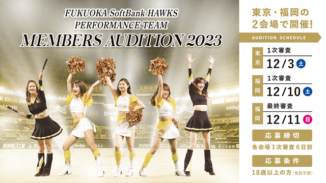 福岡ソフトバンクホークスは、「ホークスパフォーマンスチーム」の2023年度メンバーオーディションを開催いたします。