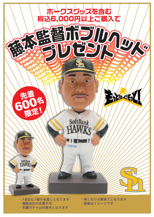 1会計でグッズを6,000円(税込)以上ご購入された先着600名のお客さまに藤本監督のボブルヘッドをプレゼントします!