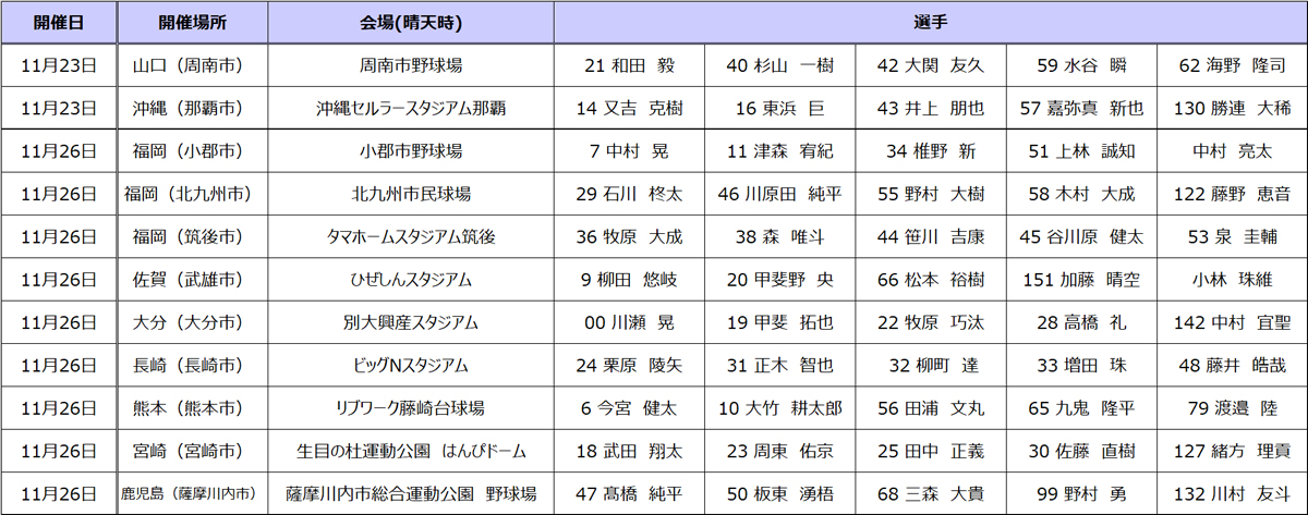 2022年11月23日(水・祝)に山口県・沖縄県会場、11月26日(土)に九州各県9会場で開催する野球教室「SoftBank HAWKSベースボールキッズ2022」の応募締め切りは、11月9日(水)まで! 各会場に訪れる選手も決まりました。たくさんのご応募お待ちしております!