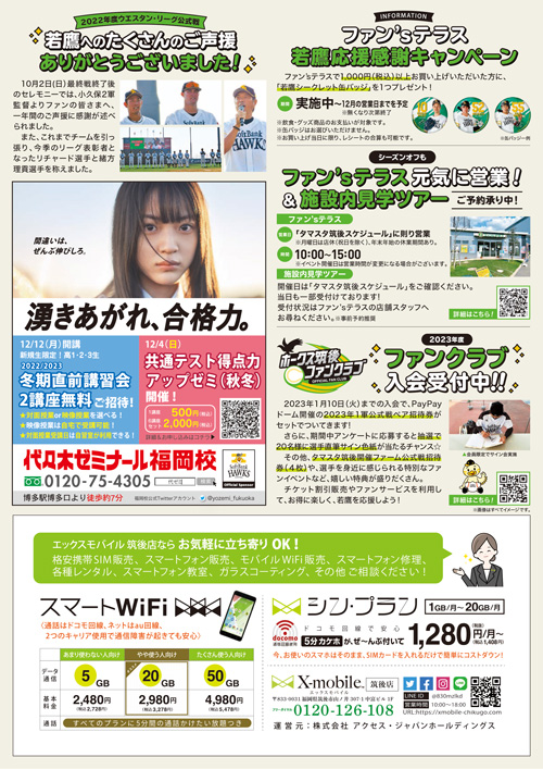 ※一部配布されない地域があります。また、『ホークスだより』の郵送対応は行っておりませんので、あらかじめご了承ください。