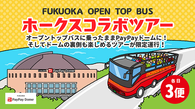 福岡市内の主要観光スポットを巡る「福岡オープントップバス」の運行ルートに「PayPayドーム」が加わった、福岡オープントップバス「ホークスコラボツアー」の発売が決定しました!