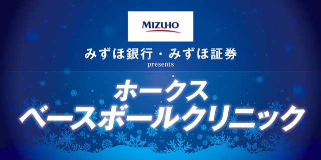 12月11日(日)に、ホークスOBが講師を務める「みずほ銀行・みずほ証券プレゼンツ ホークスベースボールクリニック」を、タマホーム スタジアム筑後にて開催します♪