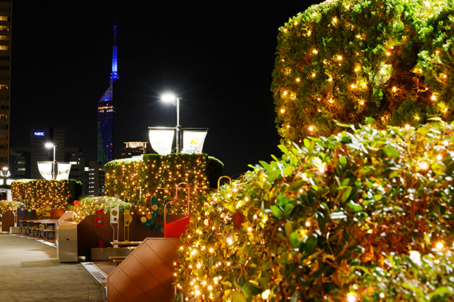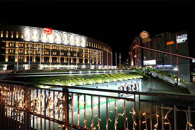 PayPayドームのイルミネーション最大のポイントは、7ゲート前に設けられている全長約60メートルの「ホークスみんなのガーデン」。