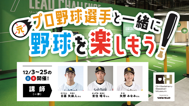 土日祝日は元プロ野球選手に会える!89パークではホークスジュニアアカデミー講師が巡回し、お子さまにコンテンツの遊び方からもっとうまくなるコツなどをアドバイスをしています♪野球の基本や選手の動きをホークスジュニアアカデミー講師に教えてもらえる絶好の機会です!遊び感覚なので、お子さまにお楽しみいただけること間違いなし!みんなそろって王貞治ベースボールミュージアムへ行こう♪