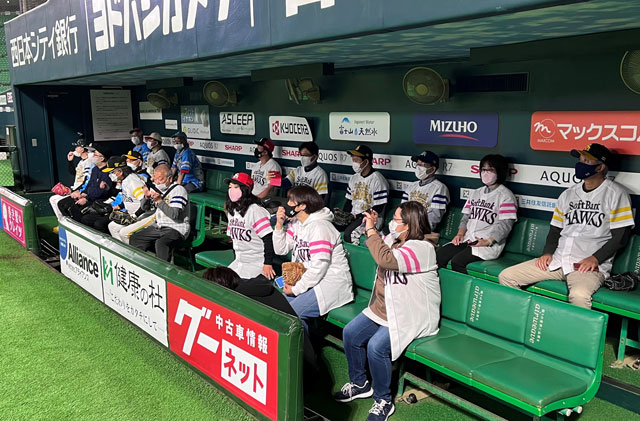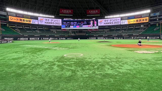 PayPayドームのグラウンドでウグイス嬢のコールに合わせて、オーナーのお名前とポジションをアナウンスし、ホークスの試合さながらのシート発表を体験いただきましたので、イベントの様子をご報告します!
