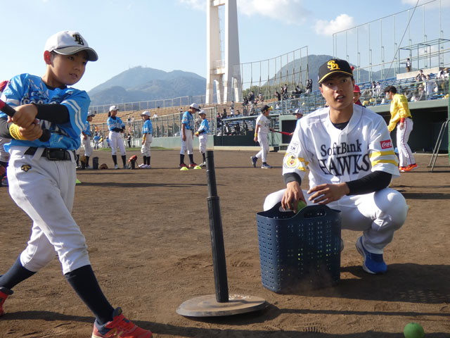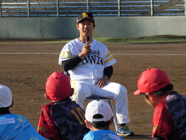 山口県周南市の会場には和田毅投手、佐賀県武雄市の会場には柳田悠岐選手、長崎県長崎市の会場には栗原陵矢選手など、各会場にホークス現役選手5名ずつが講師として登場。