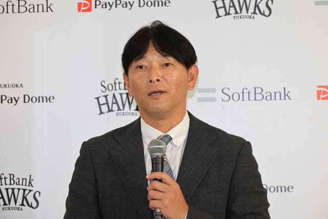11月29日(火)、来季から新設される四軍で打撃コーチを務める森笠繁四軍打撃コーチ(背番号013)の就任会見がPayPayドーム内のプレスカンファレンスルームで行われました。