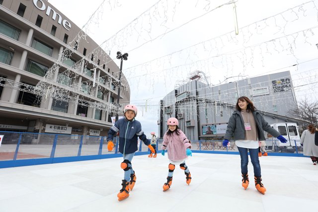 | 価格 (スケートリンク) | 大人(16歳以上):800円 小人(4歳~15歳):600円 ※3歳以下のお子様はご利用いただけません。 チケット1枚で20分間体験いただけます。 料金にはシューズ(15cm~29cm)・ヘルメット・プロテクター・手袋のレンタル備品一式が含まれます。 ※未就学児1名に対して保護者(18歳以上)1名の同伴が必要です。(同伴者は会場貸出靴を着用し補助をお願いします) ※小学生以上のお子様に同伴される場合には大人チケットの購入が必要です。 ※シューズは素足で着用いただけませんのでご注意ください。 |