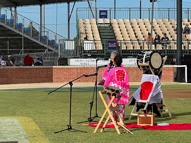 この日はジャパンナイトというイベントの日で、練習中から日本の歌が流れ、試合前には太鼓の演奏などもあり、アデレード在住の多くの日本人が球場に駆けつけ、敵地にもかかわらず風間・三浦にはたくさんの声援が送られていました。 アデレードに風間・三浦ファンが増えた事でしょう。