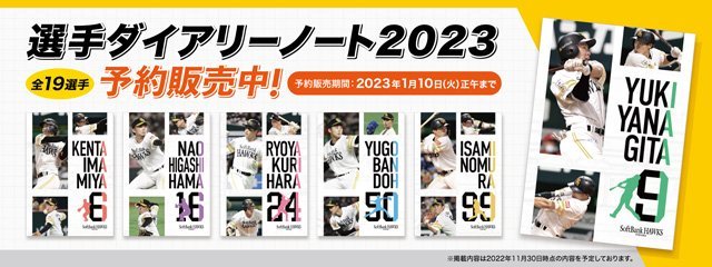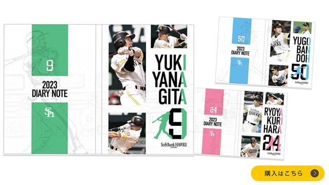 3月始まりのダイアリー機能と、野球観戦をより楽しむことができるスコア機能を兼ね備え、好きな選手と1年間ホークスを応援しながら過ごせる、ホークスオリジナル手帳です!