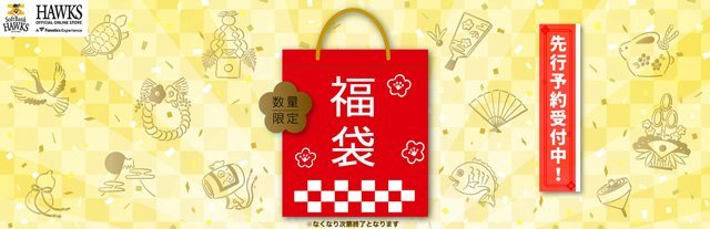豪華新春福袋が販売決定!HAWKS公式オンラインストアでは、本日より先行販売を、HAWKS STORE HOMEでは2023年1月3日(火)より販売します。数量限定発売なのでお早めに♪